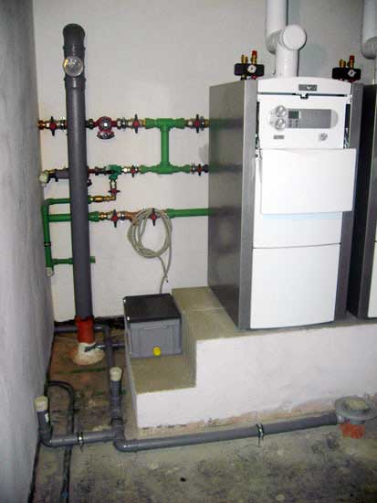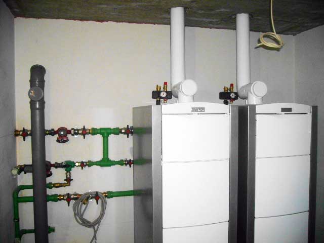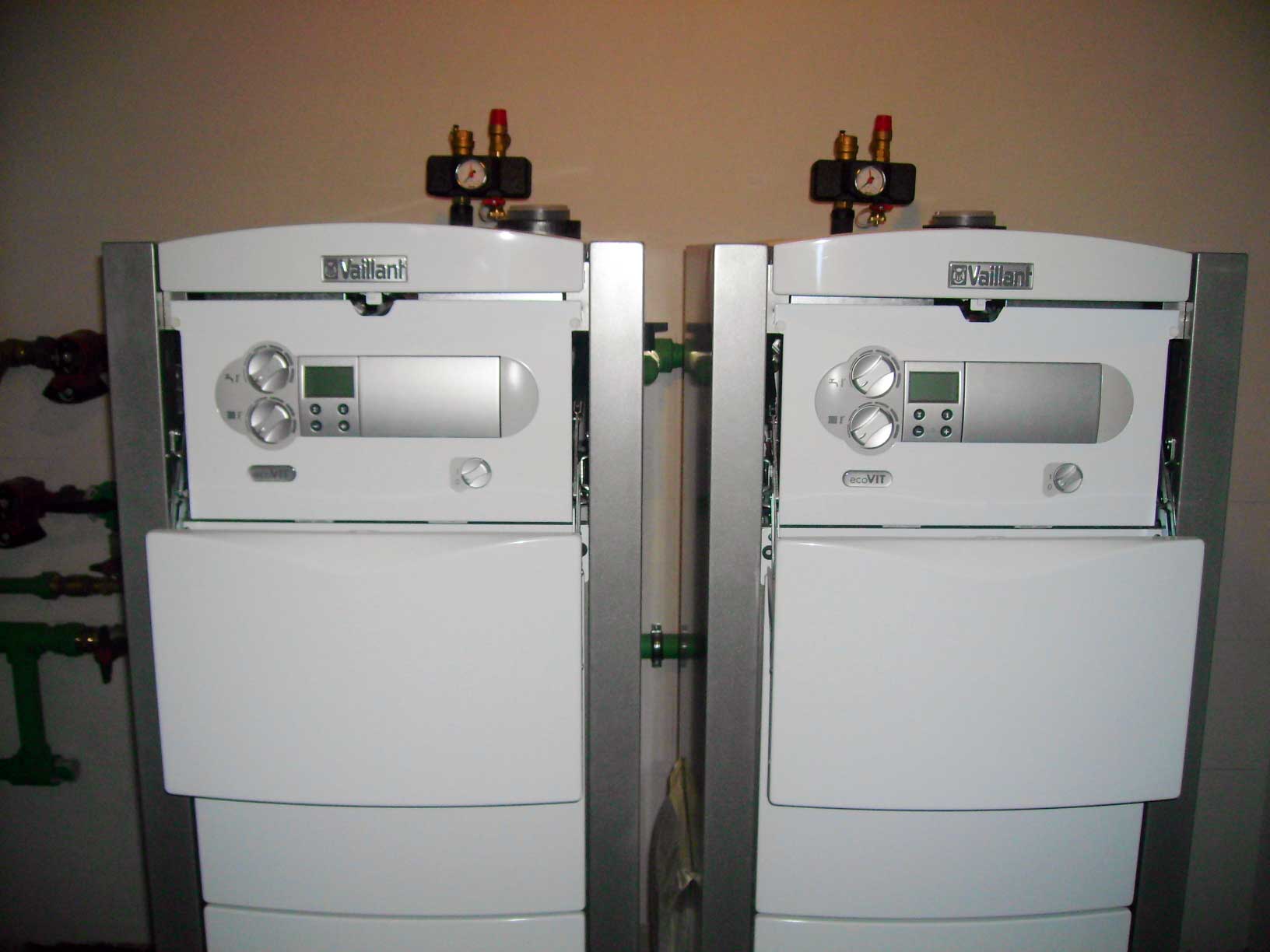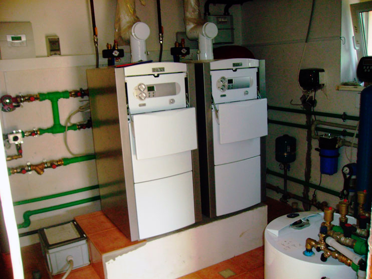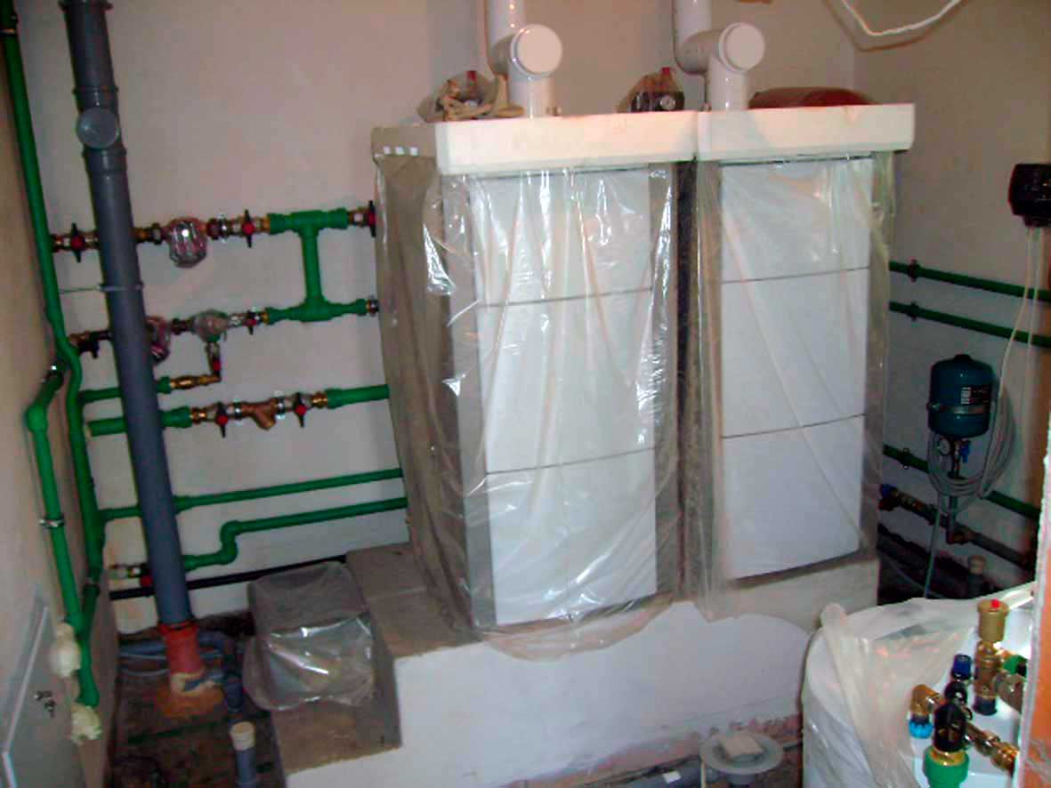 Первая в России котельная, на базе каскада из 2-х напольных конденсационных котлов Vaillant ecoVIT, общая мощность 94 кВт. Сервисная диагностика через GSM доступ, модуль vrnetDialog 8602. Автоматика ColorMATIC 630.