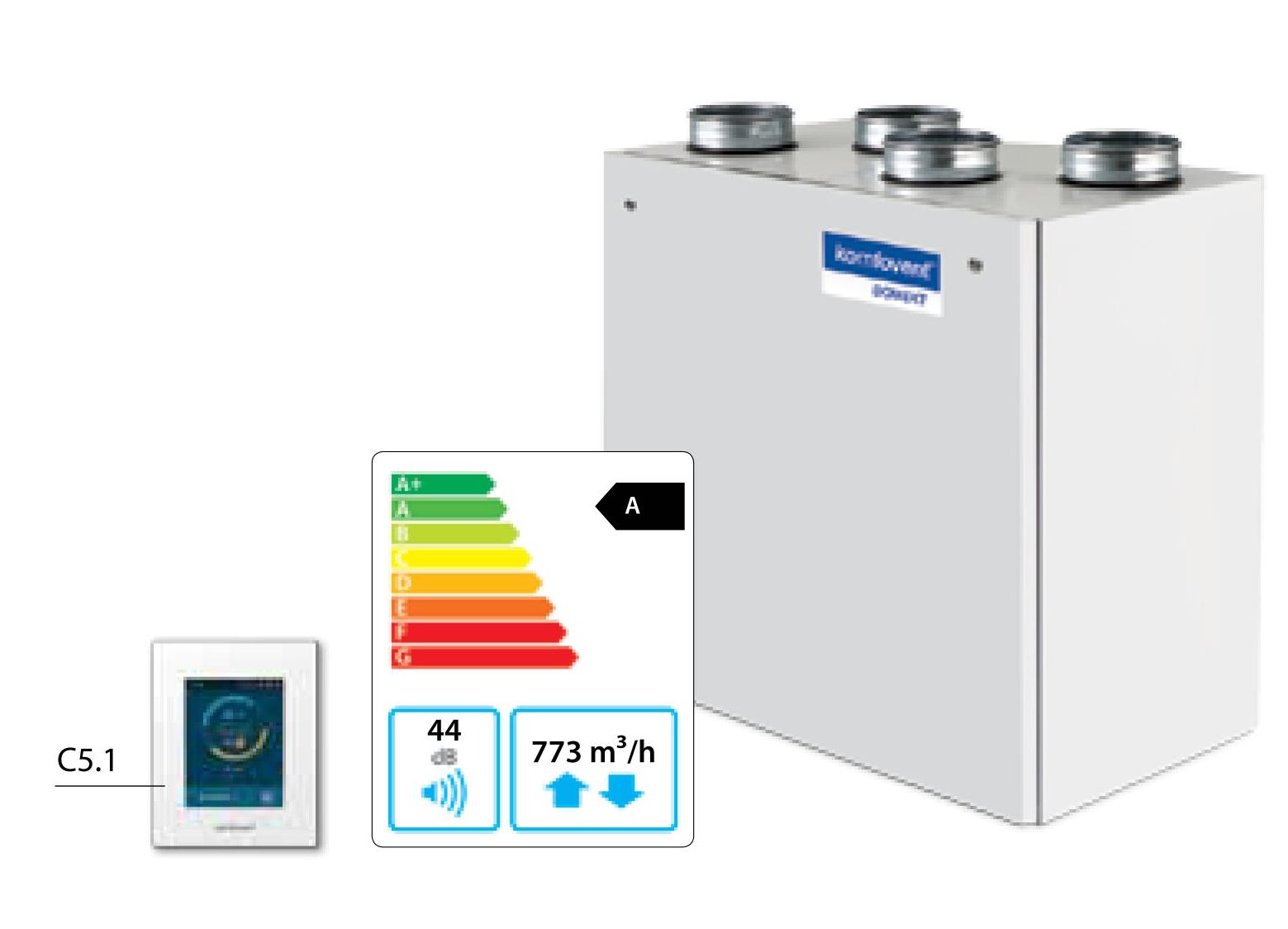 OTD-R-700-V-E – малошумная вертикальная приточно-вытяжная установка с роторным теплоутилизатором, производительностью 705 м³/ч, с электрическим нагревателем и автоматикой GTC. Вентиляционные установки OTD-R комплектуются экономичными EC вентиляторами, размещенными в звукоизолирующем корпусе. Лучше всего подходят для вентиляции небольших квартир и частных домов т.к. одним из преимуществ установок Komfovent OTD-R является компактность, конструкция позволяет устанавливать ее в ограниченном пространстве. Установка полностью готова к эксплуатации – «Включай и используй».